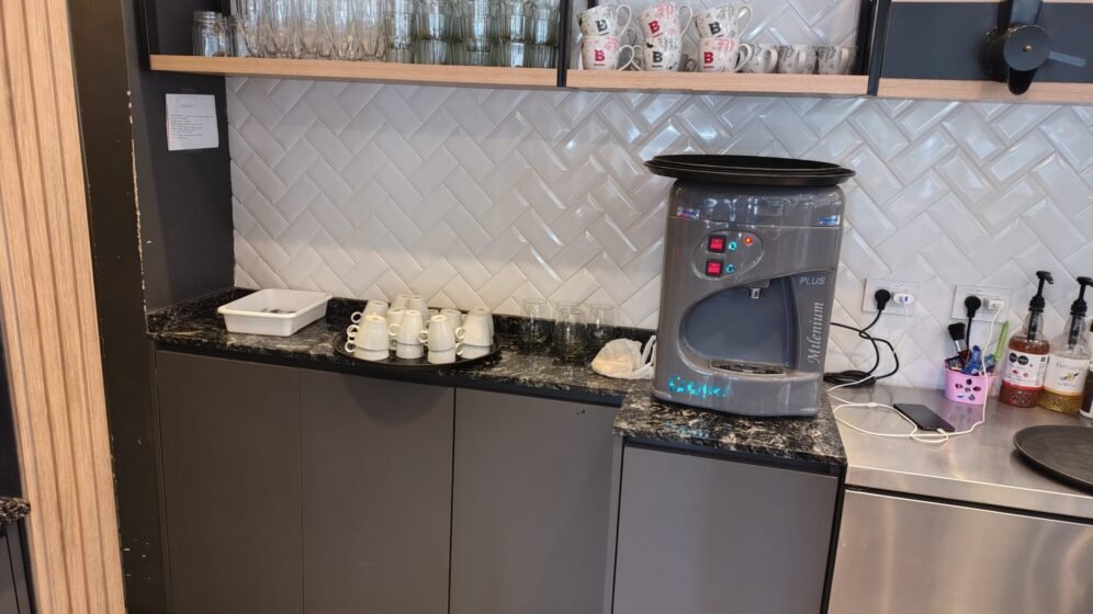 En esta oportunidad se diseñaron barras para mostradores en el área de atención al público y mesadas de cocina con una unión única entre granito Negro Boreal y mármol Blanco Turco. El contraste entre ambos materiales crea una estética sofisticada y moderna, donde la fuerza y profundidad del granito se equilibran con la pureza y luminosidad del mármol. Esta combinación es perfecta para espacios con identidad y estilo.