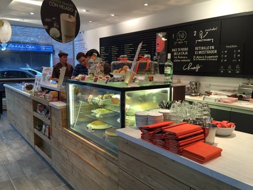 Por estas razones, instalaron un gabinete vidriado para exhibir los productos de confitería, con elementos naranjas que aluden al color institucional de la empresa, y diseñaron una estantería incorporada a la barra donde se exhiben los productos complementarios. Para las identificaciones de los productos que ofrece Chungo, se colocaron gráficas y elementos símil pizarra en los que el cliente obtiene información sobre los productos.