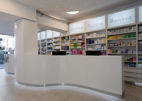 La tradicional farmacia La Danesa tiene una historia de más de 80 años en el barrio de Belgrano. Recientemente comenzó a abrir sucursales en las inmediaciones de su sede original de la Avenida Cabildo. Para los proyectos de estas sucursales convocó al estudio de la Arq. Angélica Campi, en la búsqueda de contar con el respaldo de su calidad y experiencia en el diseño de locales comerciales.