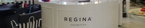 Meta Fábrica de Identidad conformó íntegramente en su taller una góndola para el sector de maquillajes y exposición de los productos de la firma Regina Cosmetics. La morfología de la misma alude tanto a la imagen corporativa de la compañía de cosméticos, como así también al centro de estética, de manera tal que se integre a la estética del local.
