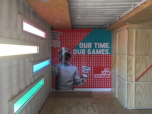 “Para hacer este trabajo de arquitectura publicitaria tuvimos en cuenta las necesidades de los deportistas, periodistas y asistentes al evento. Dentro de la Villa Olímpica se precisaban boxes individuales y espacios para entrevistas y fotos principalmente”.