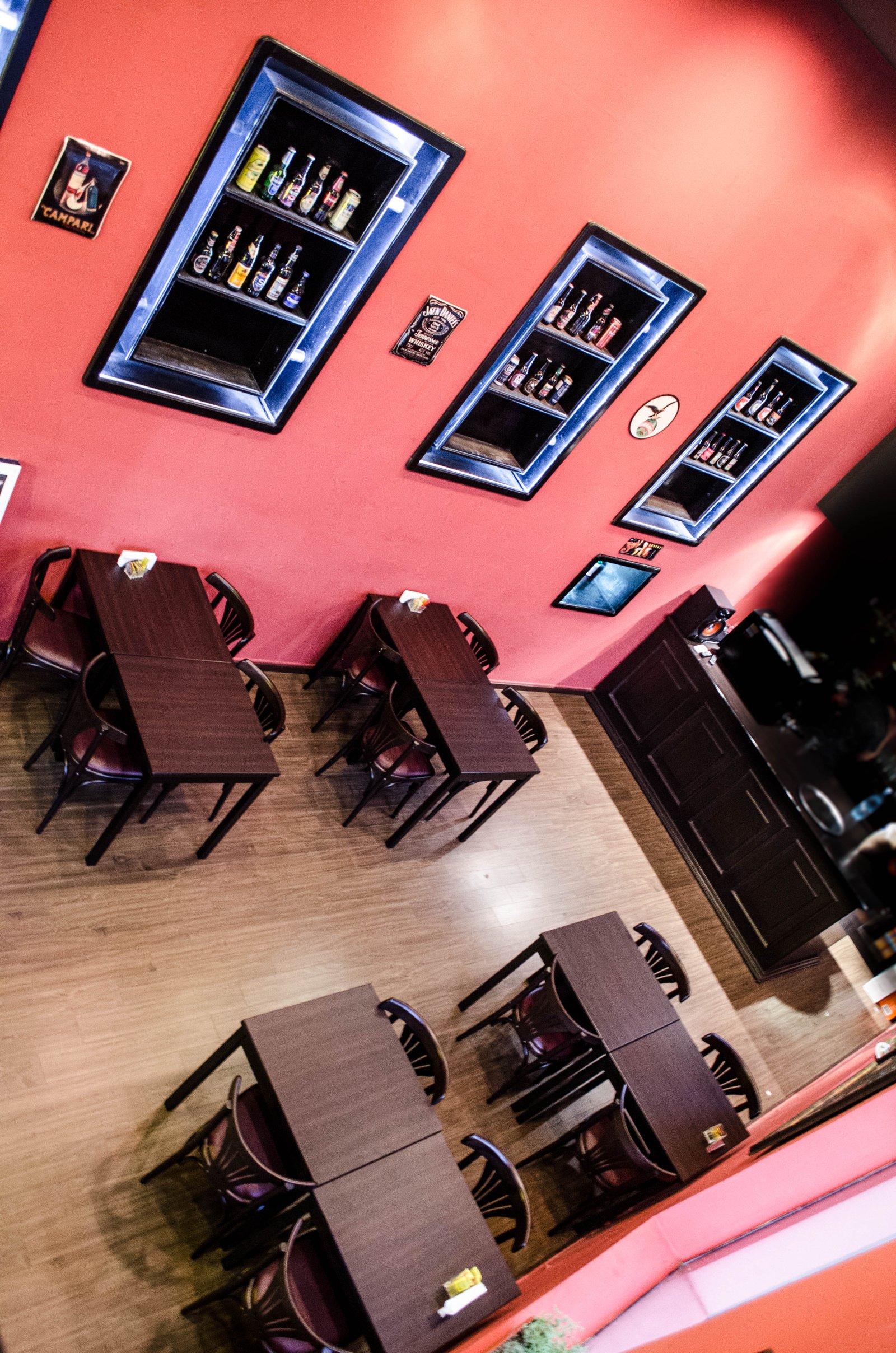 Especialmente en los locales gastronómicos, la madera predominó en barras y estantes, presentes en los 15 puestos que forman parte del complejo. Además, Cacetto aplicó su estilo dos amplias canchas de los bowling Paloko, utilizando un concepto de enchapado en MDF y muebles cajas del mismo material.